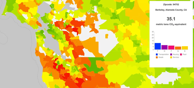 Average Annual Household Carbon Footprint by Zip Code (c/o Coolclimate)